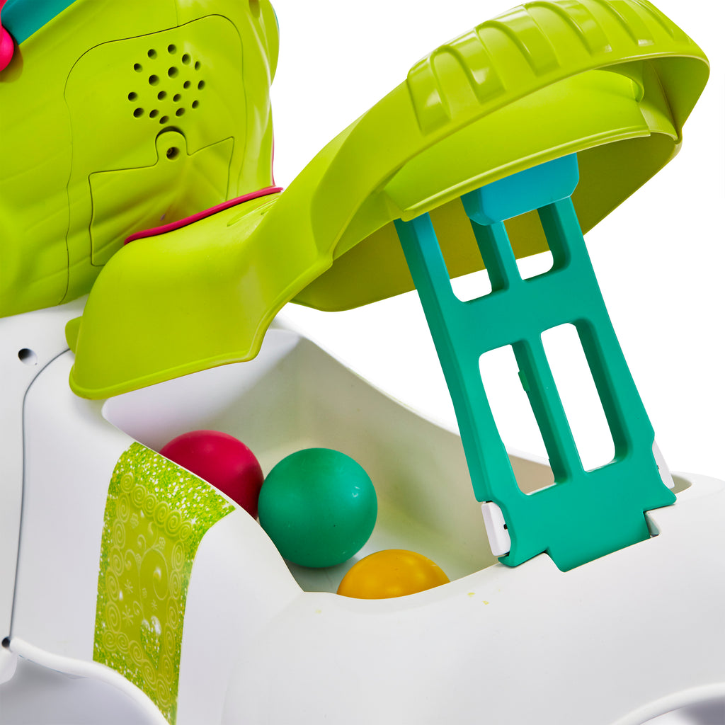From first strides to magical rides, Smilin' Shimmer grows with your baby! Sitting babies explore colors, numbers, shapes and more. New walkers step out with confidence. Growing toddlers are ready to roll! Versatile ball play includes put-and-take action in the seat and popping and scooping on the go.